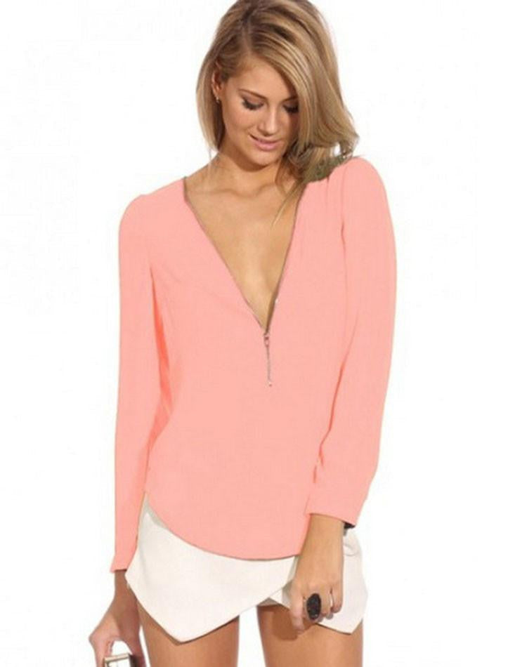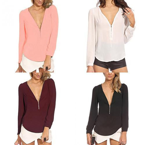 Elevate your wardrobe with our Women's Fashion Casual V Neck Long Sleeve Zipper Tops Chiffon Blouses, the perfect blend of style and comfort. Designed with the modern woman in mind, this blouse features a flattering V-neckline and a chic zipper detail that adds a touch of sophistication to any outfit. Made from high-quality chiffon and polyester, this lightweight and breathable top ensures you stay comfortable while looking effortlessly stylish.