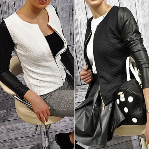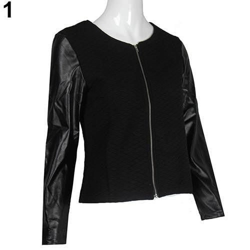 This Women's Fashion Casual Faux Leather Splicing Zipper Long Sleeve Jacket Coat is perfect for transitioning through seasons. Pair it with jeans for a casual lunch or dress it up with a skirt for a night out. Its regular clothing length and full sleeves offer just the right amount of coverage while keeping you stylish.