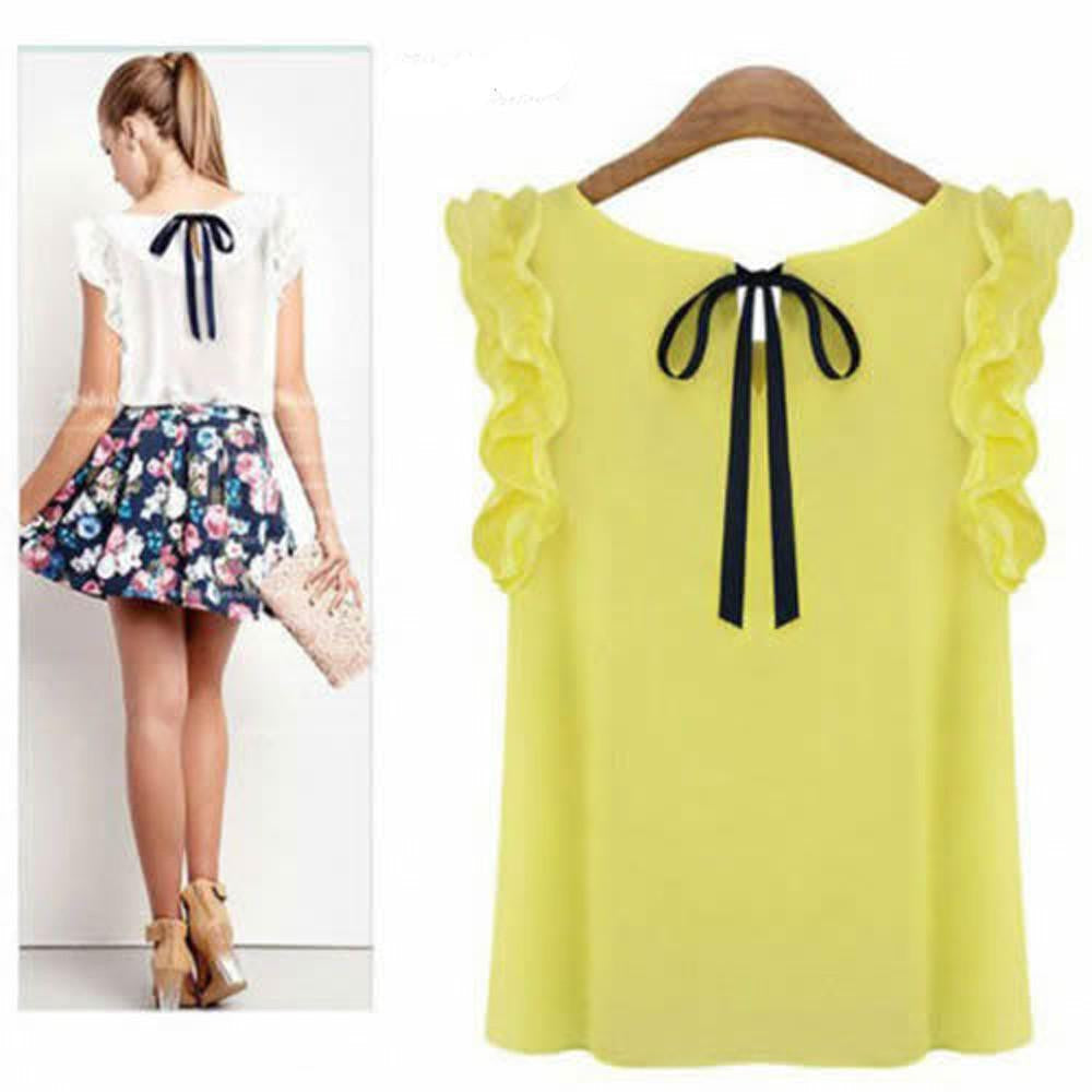 Discover effortless elegance with our Women's Loose Casual Chiffon Sleeveless Tank Tops Blouse, designed for the modern woman who values style and comfort. This chic chiffon top features a unique design highlighted by short ruffle sleeves and a stunning bow at the back, making it the perfect choice for any casual outing or special occasion.
