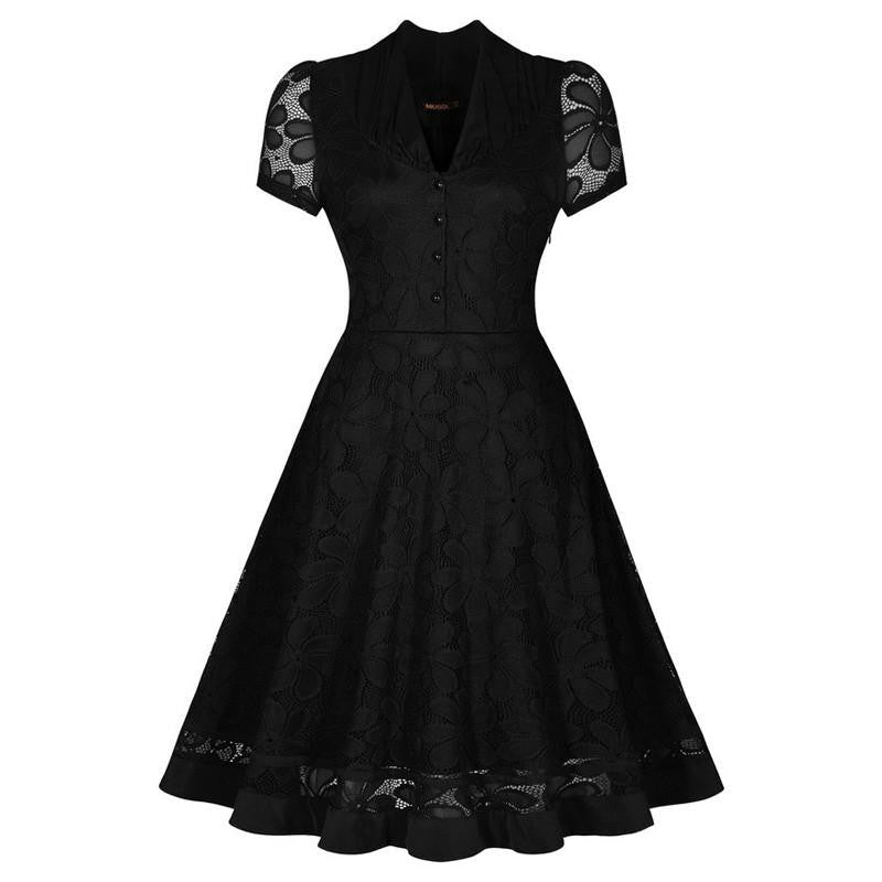 Don’t miss out on this elegant piece that embodies the charm of classic pin-up fashion. Add the Womens Summer Dress Vintage V-Neck Cap Sleeve 1950s Hepburn Style Pin up Rockabilly Party Black Lace A-Line Dresses to your collection today and make a statement at your next event!