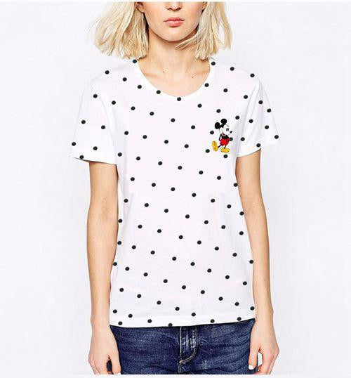 This Women's T-Shirt Polka Dots Clothes Shirt O-neck Cartoon Print Casual Short Sleeve Bottming Tops can be effortlessly styled with jeans, shorts, or skirts for a chic, casual look. Whether you're heading out for a shopping spree or lounging at home, this tee ensures that you feel confident and stylish.