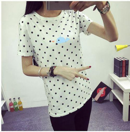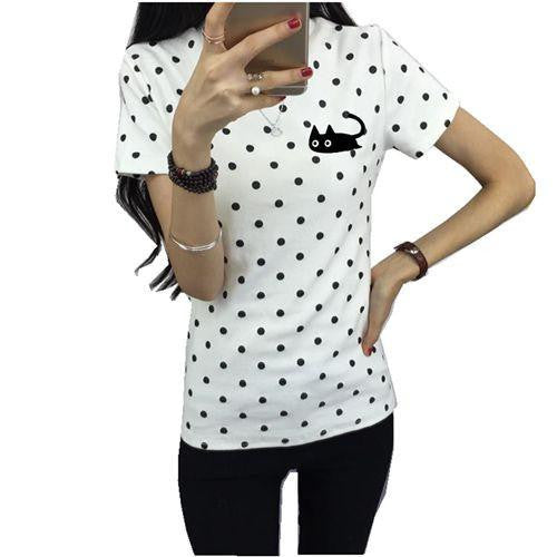 Whether you're heading out for a casual brunch, a day at the park, or just lounging at home, the Women's T-Shirt Clothes Girls Tee Shirt O-neck Polka Dotted Printed Tshirt Short Tops Bottoming Tops is your go-to choice. Its trendy design and comfortable fabric make it a must-have for every fashion-savvy woman.