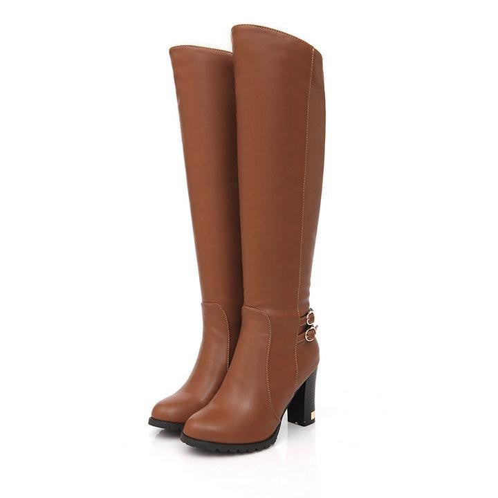 Step out in style this winter with our Womens Inside Fur Knee High Heel Boots Fashion Top Zipper Warm Snow Boots Shoes Female Black Brown Apricot. Designed for the fashion-forward woman, these boots offer both warmth and elegance, making them the perfect accessory for any cold-weather outfit. Crafted from high-quality PU material, they provide durability and a sleek appearance, while the inside fur lining ensures your feet stay cozy even in the chilliest conditions.