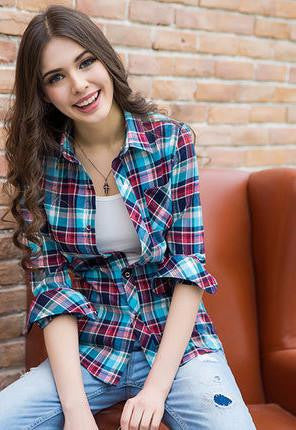 Elevate your style with this essential plaid shirt that prioritizes both comfort and fashion. Order your XS-3XL Women Shirt Sanded Loose Plaid Shirt Tops Girl Outerwear Cotton Shirt Female today and redefine your wardrobe!