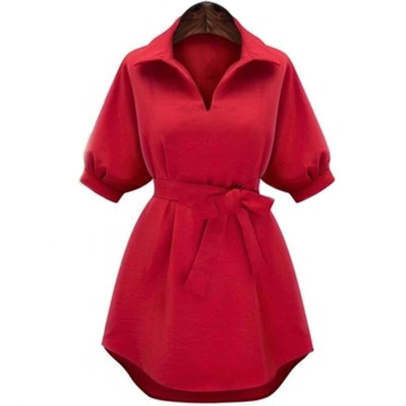 This oversized tunic shirt features a chic half sleeve design and charming sashes that accentuate your waist, providing a flattering silhouette for plus-size figures. Available in striking colors like red and blue, you will have no trouble finding the perfect match for your wardrobe.