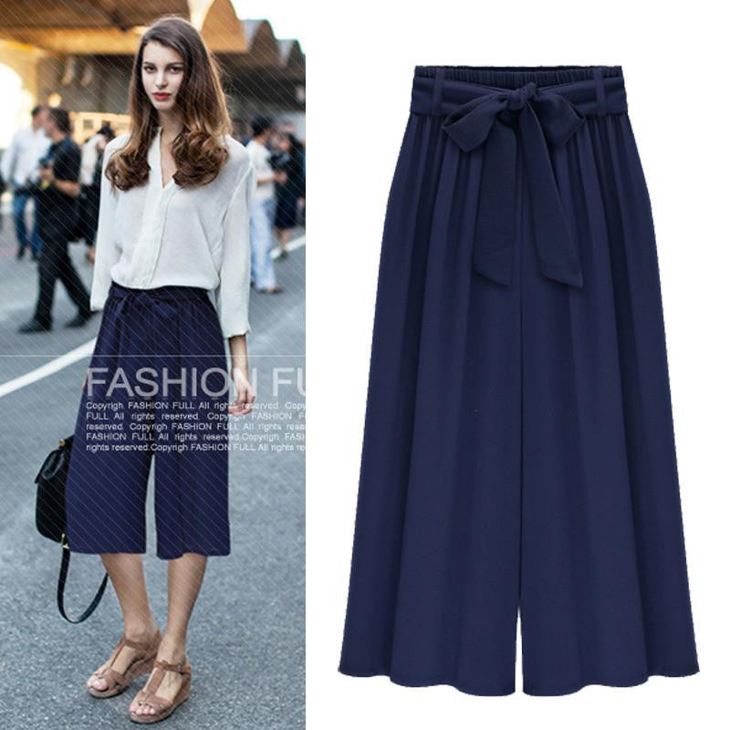 Featuring a high elastic waistband and a loose fit, these wide-leg pants ensure all-day comfort without compromising elegance. The beautiful chiffon fabric not only feels great against the skin but also adds a touch of sophistication to your wardrobe. The solid color options, including classic black and navy blue, make them versatile pieces that can be effortlessly styled with various tops.