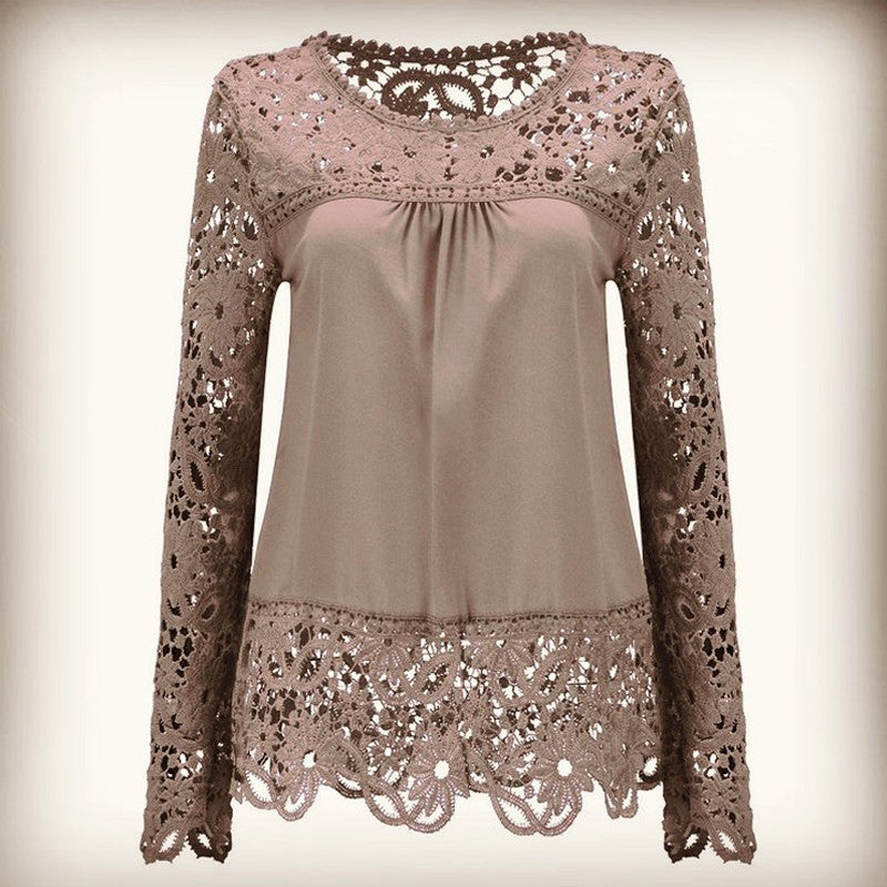Pair the Plus Size Women Chiffon Shirt Blouse Hollow Lace Women Shirt Long Sleeved Shirt Fashion Casual Women Tops with your favorite jeans for a chic casual look, or dress it up with a skirt and heels for a more polished ensemble. This blouse seamlessly transitions from day to night, making it a staple piece in your wardrobe.