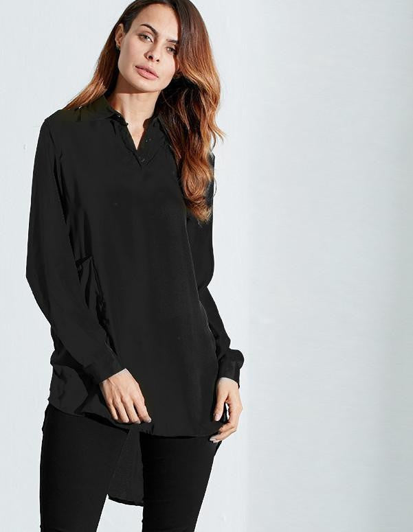 This black button down shirt dress is so mundane. Get this beautiful summer and spring way into your closet today. This full sleeve length dress is stunning.