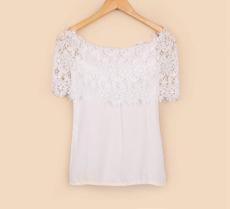 Elevate your style with our Women Chiffon Lace Stitching Tops Ladies Casual Off Shoulder Short Sleeve Blouse Shirts Plus Size. This stunning blouse is designed for the modern woman who loves to express herself through fashion. The elegant off-shoulder design paired with exquisite lace stitching creates a sophisticated look that is perfect for both casual outings and special occasions.