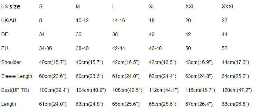 Sizing chart can be found in the photo section at the top of the page or in the description.
